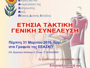 Δ.Τ. - ΠΡΟΣΚΛΗΣΗ Γ.Σ. 2016 Το Διοικητικό Συμβούλιο της Ελληνικής Ένωσης για την Αντιμετώπιση της Σκλήρυν …