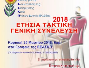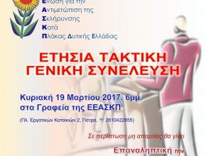 Η ΕΕΑΣΚΠ μαζί με την Ελληνική Εταιρεία Αντιρευματικού Αγώνα (ΕΛΕΑΝΑ) νομού Αχαΐας και τον Όμιλο Εθελοντών Κατά …