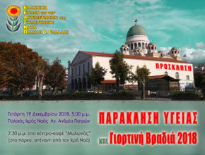 Παράκληση Υγείας & Γιορτινή Βραδιά 2018 …