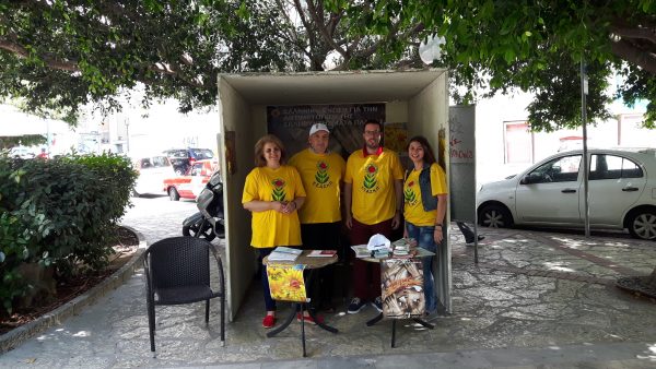 - Κατασκευή και μοίρασμα στο κοινό, καρφιτσών στο σχήμα του λογότυπου του Σωματείου (ηλιοτρόπιο).