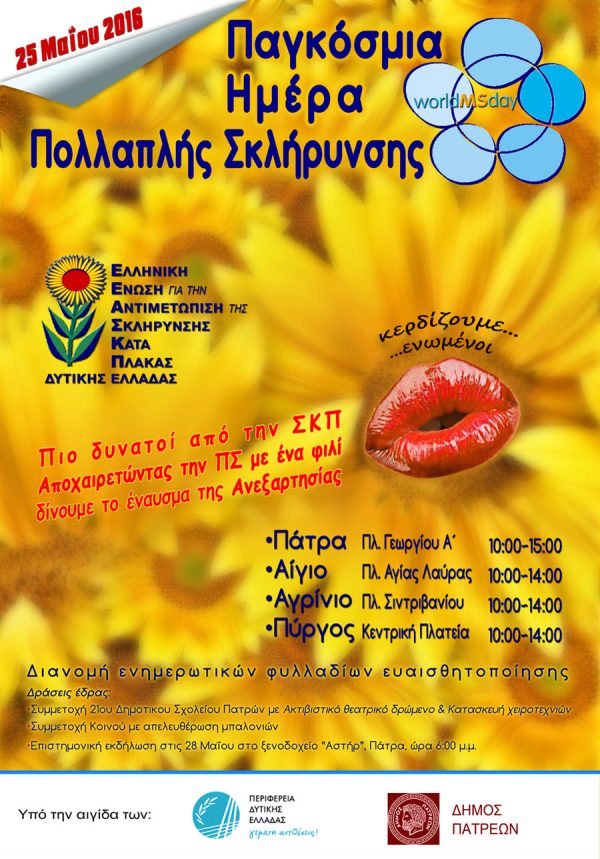 Στα πλαίσια της Παγκόσμιας Ημέρας Πολλαπλής Σκλήρυνσης (WORLD MS DAY 2016), η ΕΕΑΣΚΠ συμμετέχει στην Παγκόσμια κινητοποίηση με τις εξής εκδηλώσεις: